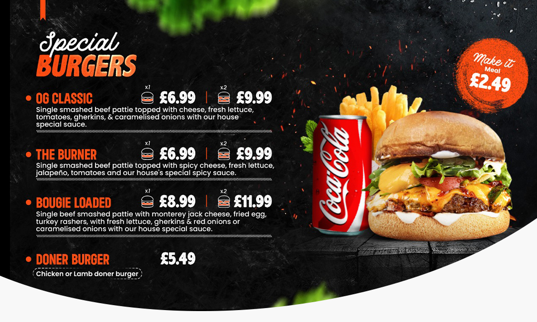 Double beef, cheese, lettuce, tomato, flaming sauce